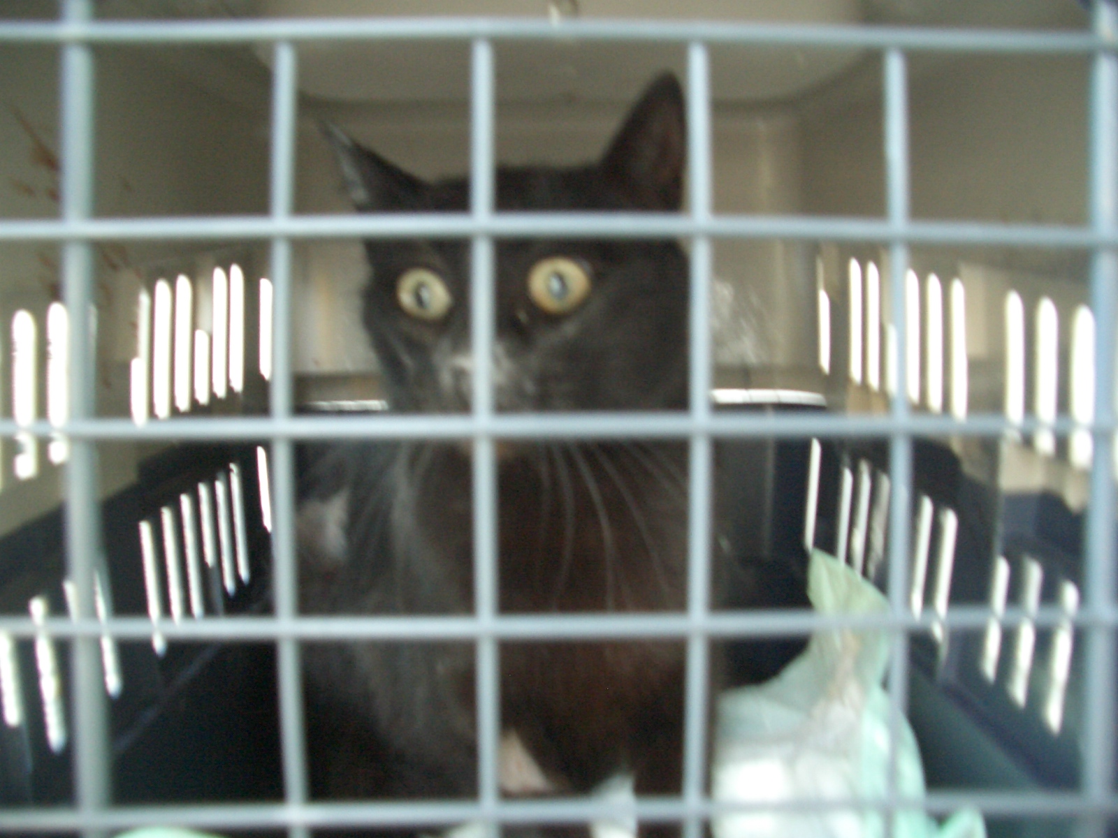 The first female cat I trapped had a problem-when I collected her after neutering, they told me they had found a mammary tumour but didn’t do anything about it. They said they would have to remove all the mammary glands but I knew this wasn”t the case so I asked them to just remove the one with the growth. It was not the normal vet I use so I took a bit of a risk in questioning their decision but it was one I had to take for the sake of the poor cat who would be put back on the street to fend for herself with Cancer. She then had to stay in the vets even longer to wait for another operation. Would you believe that when the day came, they put her under anaesthetic again to find that the tumour had miraculously gone? When I released her, I noticed that it looked like she had been nursing kittens which accounted for the swelling-what a shame this hadn’t been spotted sooner- she belted off up the road-what an ordeal for her! I tried to hot-foot it after her to check if there were kittens but she went too fast.