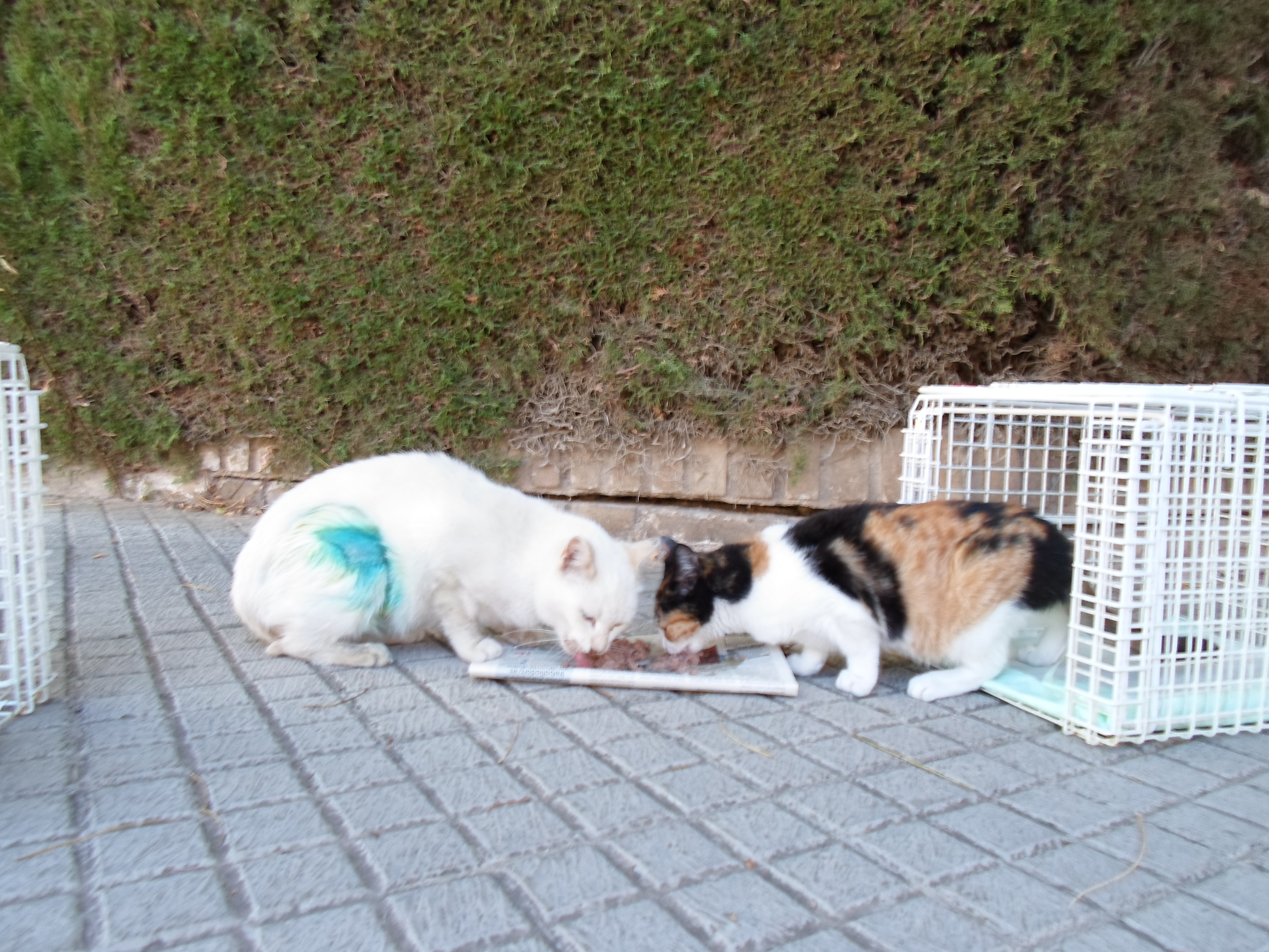 After I had the young friendly white and ginger cat sterilised, I had to take her to the apartment immediately after neutering when she was still under unconscious so she ended up spending another 24 hours there after which time I definitely did not want to put her back in the bad area. What a sweetheart! You have never seen such a grateful and well-behaved cat-she just sat on a little sheet and hardly moved except to roll over and purr when you stroked her. My friend Katri kindly offered to foster her for me and she found a lovely home-she will soon be going to live in Barcelona with another cat and her new mum and dad-wonderful!