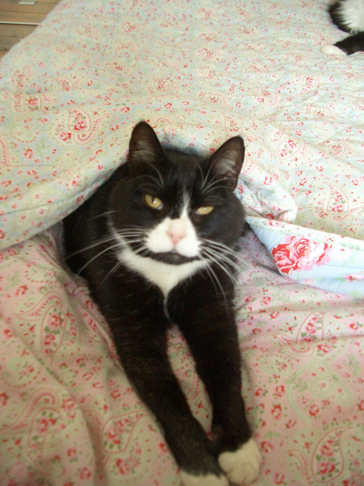 I have rescued and rehomed a lot of cats this year starting with poor Tibby who was found with his owner who had passed away at Christmas-he was so traumatised and could not be touched but he was such a gentle boy that he soon came round enough for me to home him with a lovely family nearby. When they came to see him, he hid but I knew they were right for each other and although they had never had a cat before, it all worked out brilliantly-he is a different cat now! Before and after….
